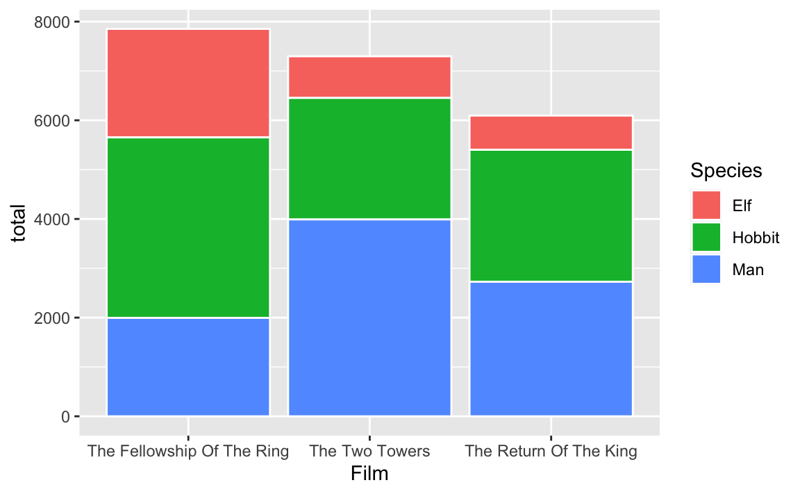 mapping = aes(x = Film, y = total, fill = Species)