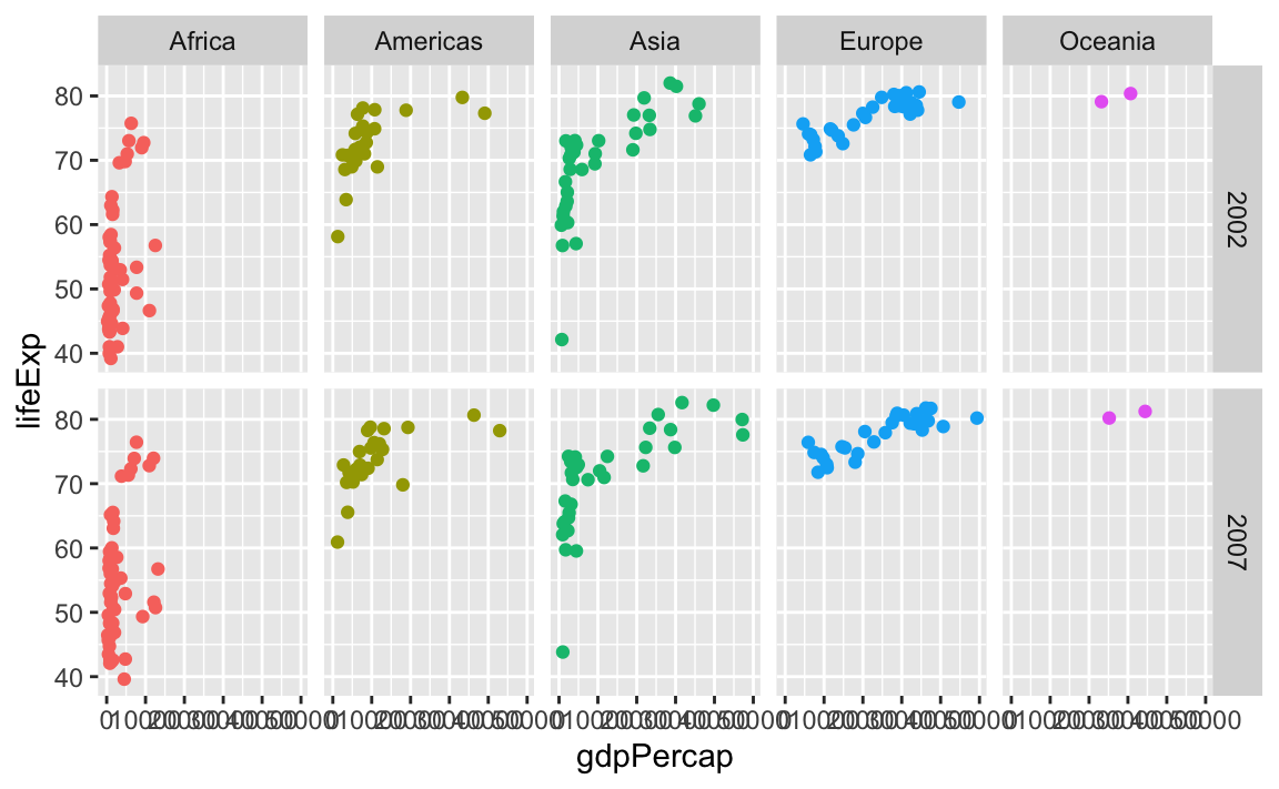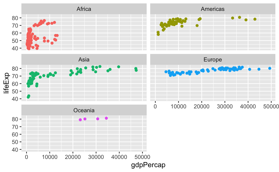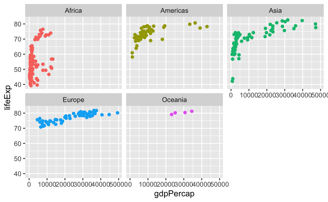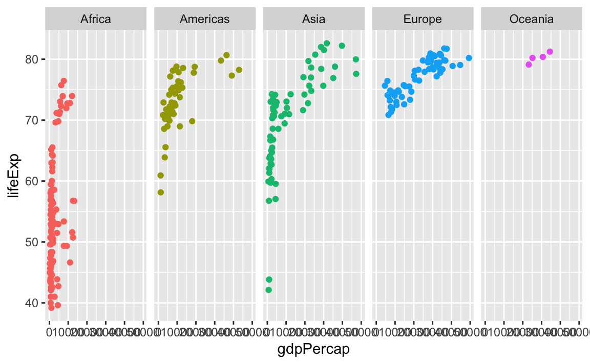 facet_wrap(vars(continent), nrow = 1)