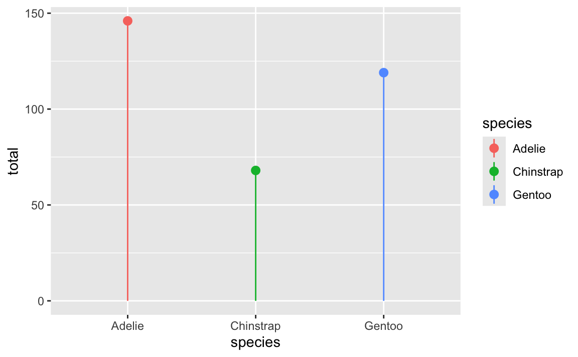 geom_pointrange(aes(ymin = 0, ymax = total))