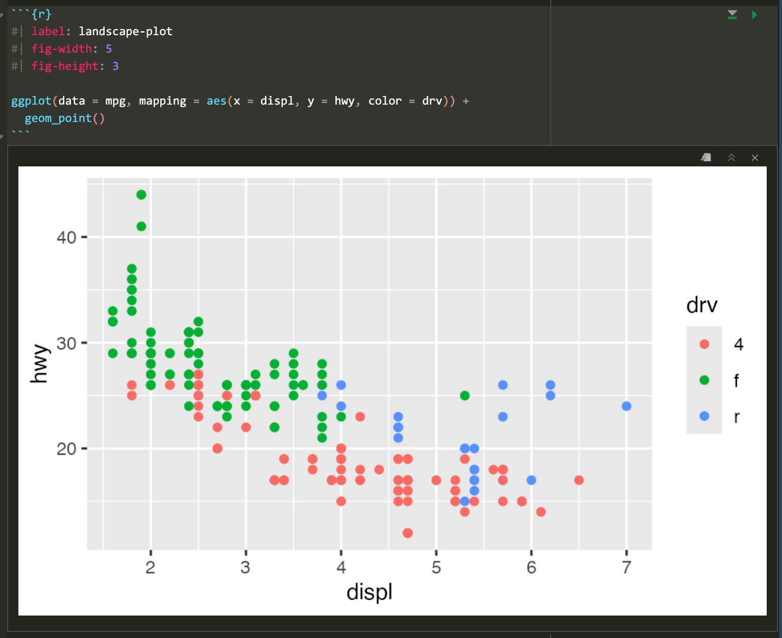 Often, though, those plots are excessively large and can result in text that is too small and dimensions that feel off. You generally want to have better control over the dimensions of the figures you make. For instance, you can make them landscape when there’s lots of text involved. To do this, you can use the fig-width