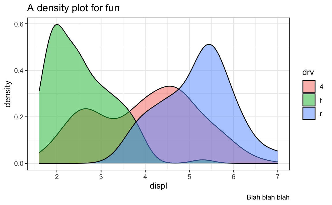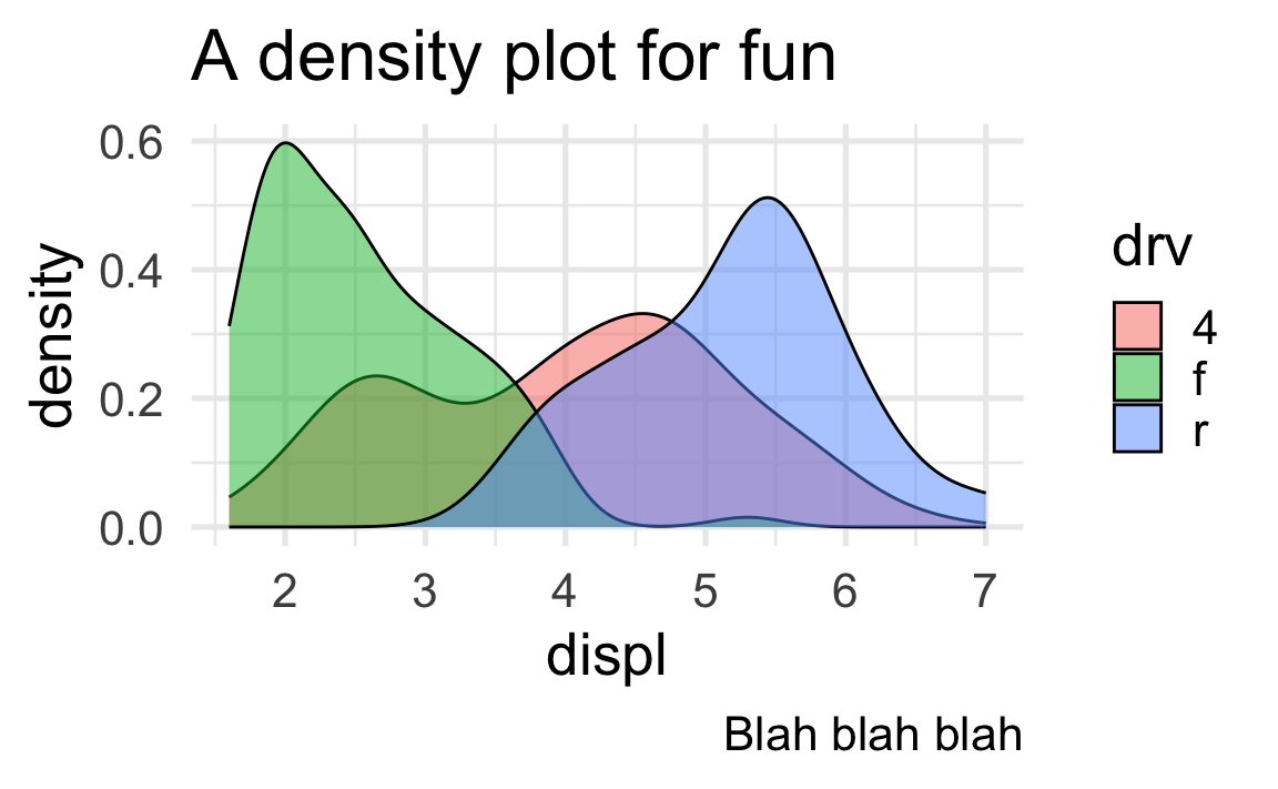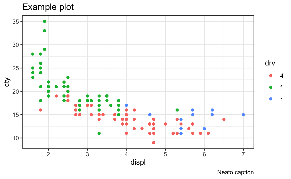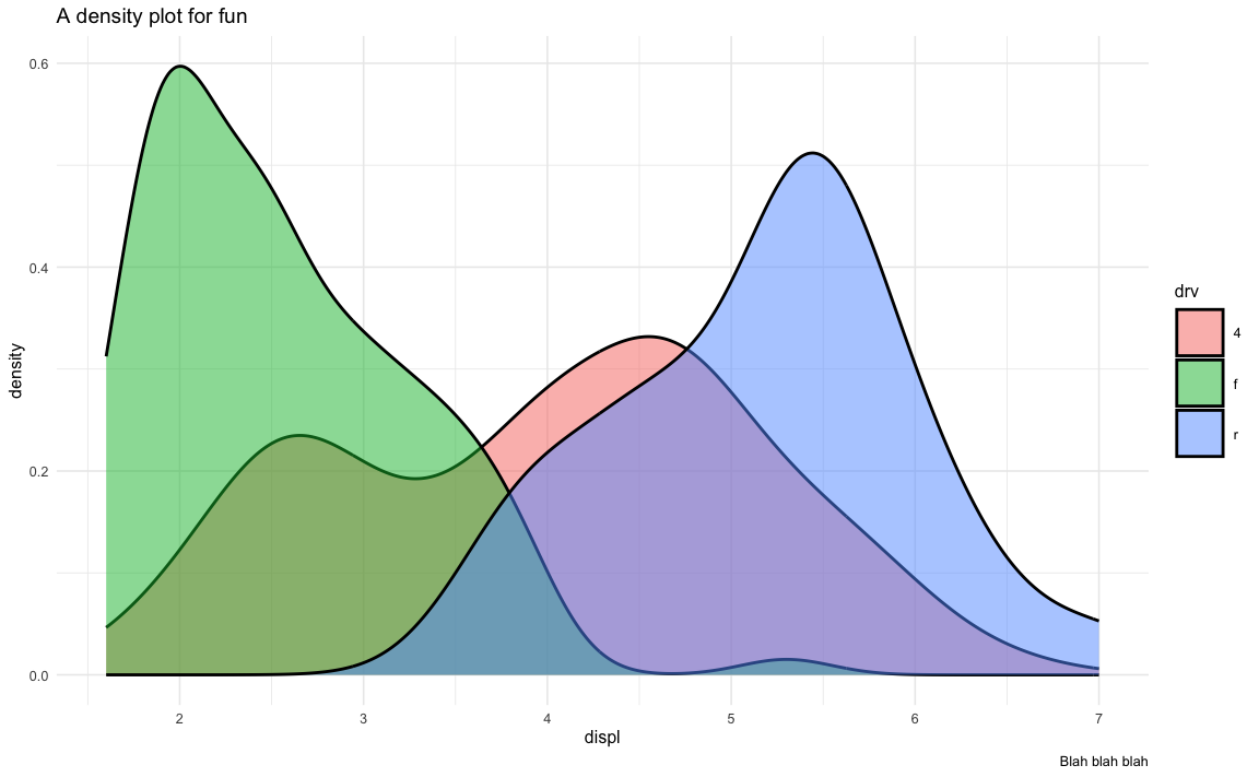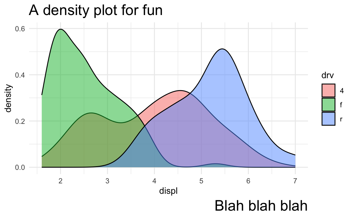 <- ggplot(mpg, aes(x = displ, y = hwy, color = drv)) +