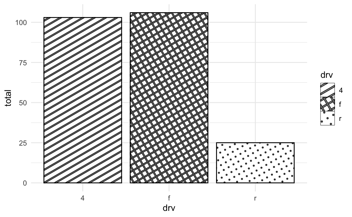 Sometimes when you have to create a grayscale plot (like for a document that will only be printed in black and white), it’s helpful to fill areas with patterns (stripes, dots, squares, etc.) instead of colors.