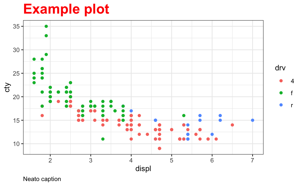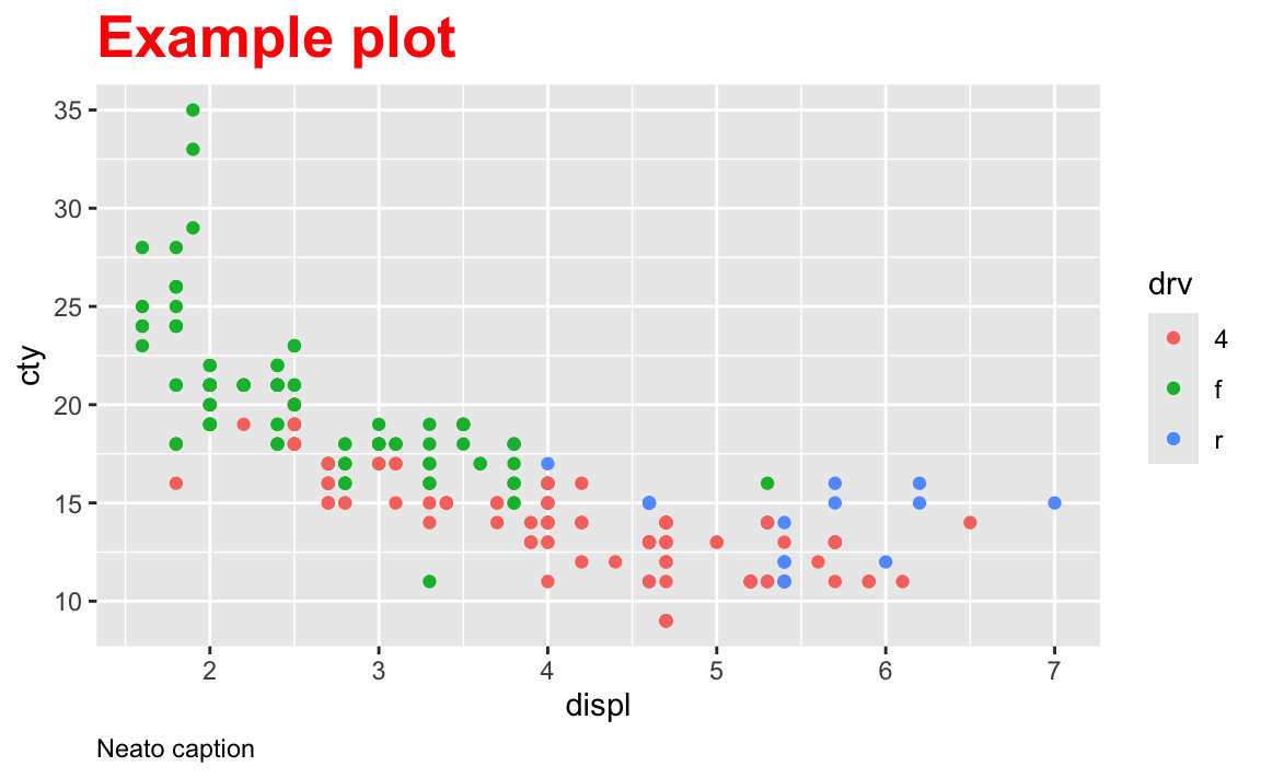 For instance, here I make a bunch of changes to the theme, like making the title bold, bigger, and red, and moving the caption to be left-aligned: