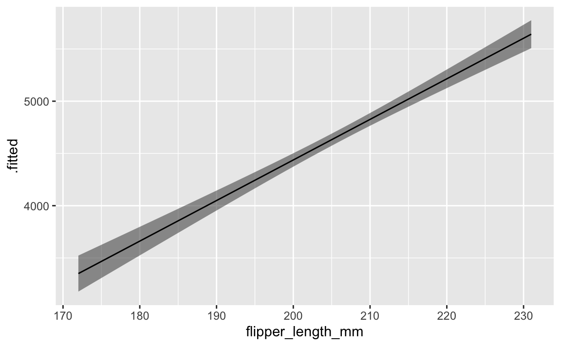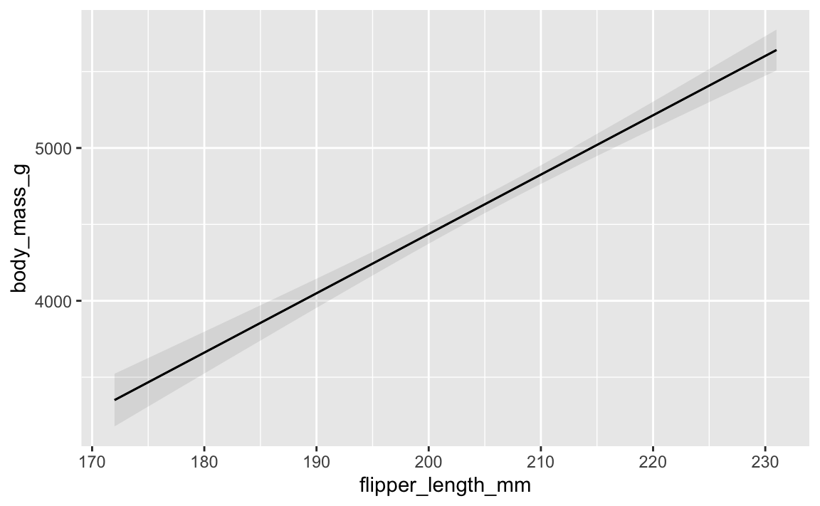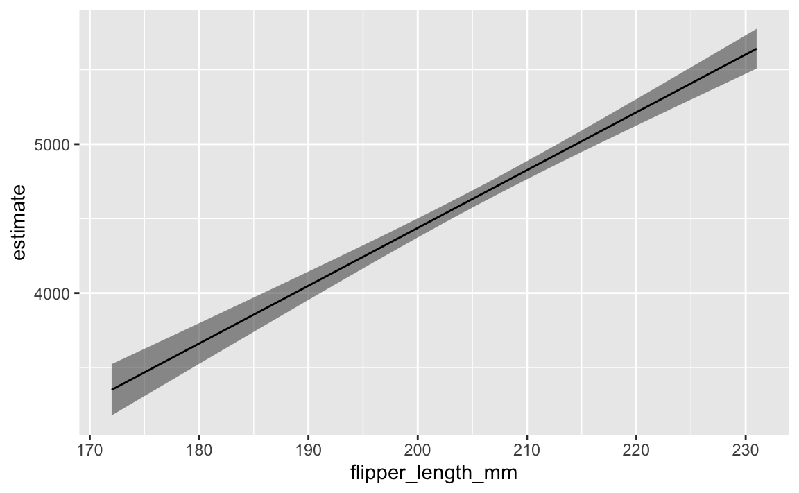 Let’s say we want to see predicted body mass across a range of flipper lengths while holding all other variables constant. Here are three ways: