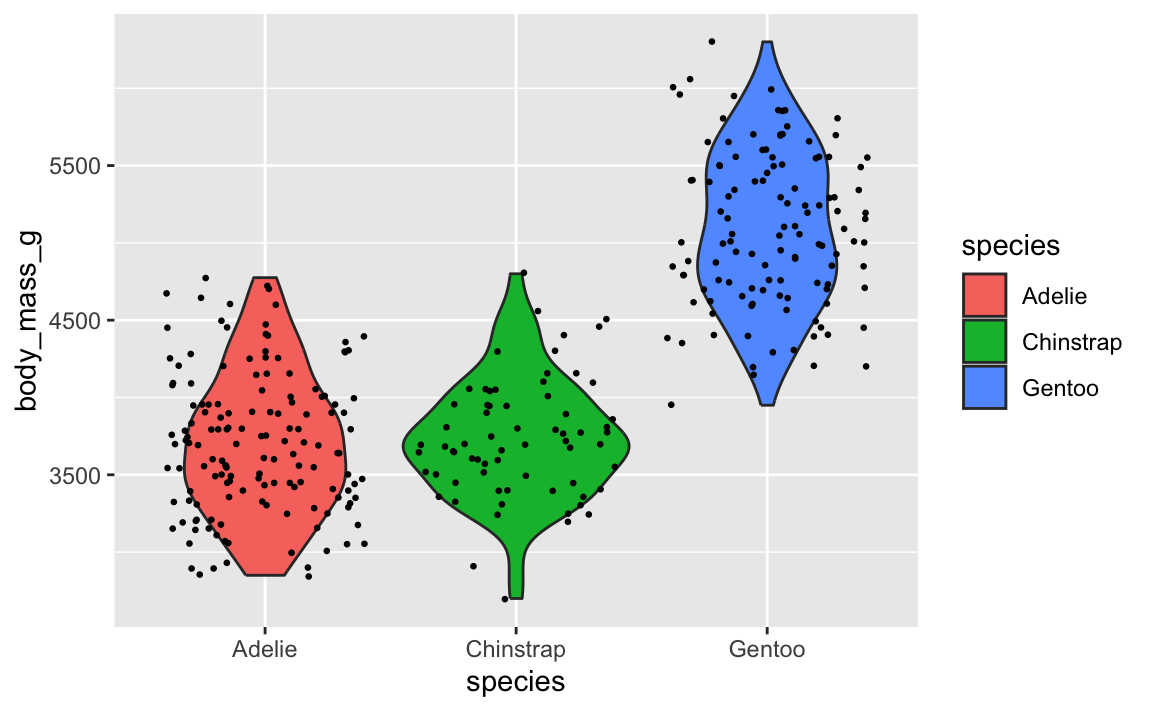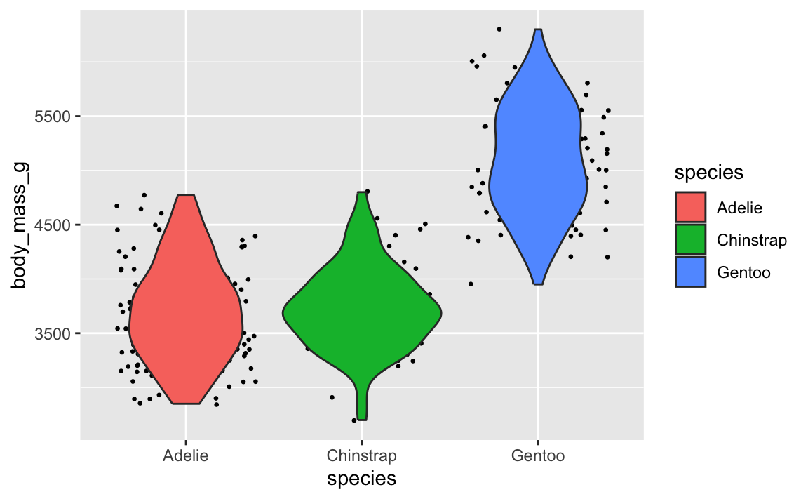 Let’s say you want to have a violin plot with jittered points on top. If you put geom_point() first, the points will be hidden by the violins: