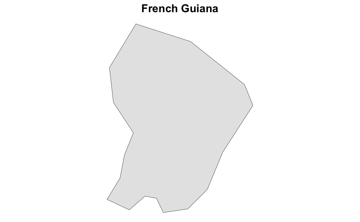 The country-level data includes shapes for the whole country, so France includes French Guiana and French Polynesia and part of Antarctica